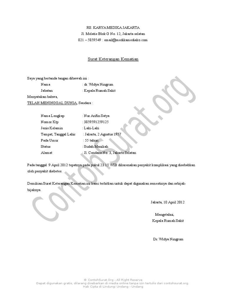 Contoh Surat Keterangan Kematian Rumah Sakit / 357115794 Contoh Surat Keterangan Kematian Rumah Sakit - Jakarta, 10 april 2012 mengetahui, kepala rumah sakit dr.. Surat kematian atau surat keterangan kematian dari desa, dibuat ketika seseorang warga desa tersebut meninggal di wilayah desa yang bersangkutan. Contoh surat keterangan kematian rumah sakit 6nq8jjykopnw. Demikian surat keterangan kematian ini kami terbitkan untuk dapat digunakan semestinya dan sebijakbijaknya. Save save contoh surat keterangan kematian rumah sakit for later. Berikut kumpulan contoh surat dinas resmi baik undangan untuk pemerintah yang baik dan benar.